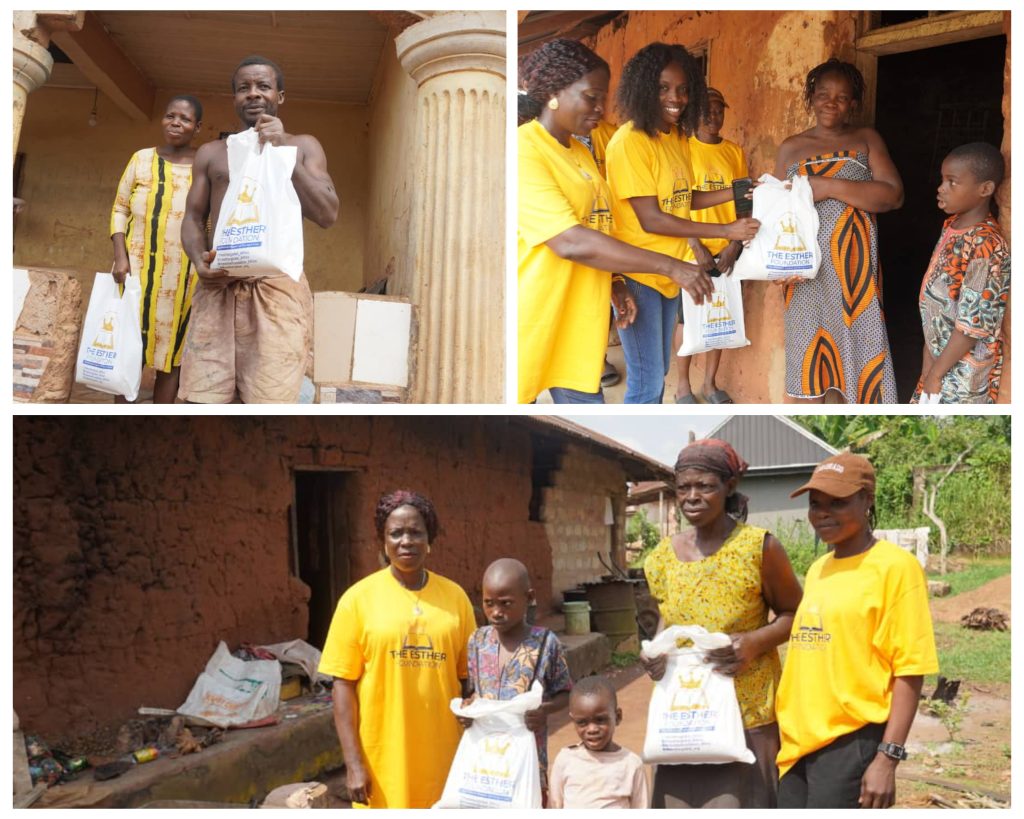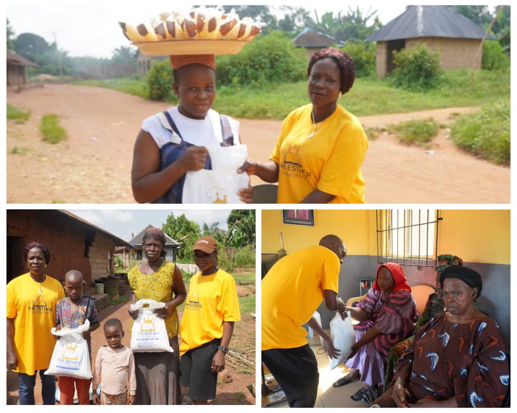 There was a burst of excitement in Evbuotubu Community in Egor local government area of Edo State as Esther Foundation carried out a Christmas outreach to support the less privileged with the distribution of food items.