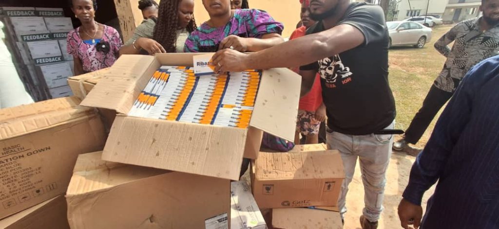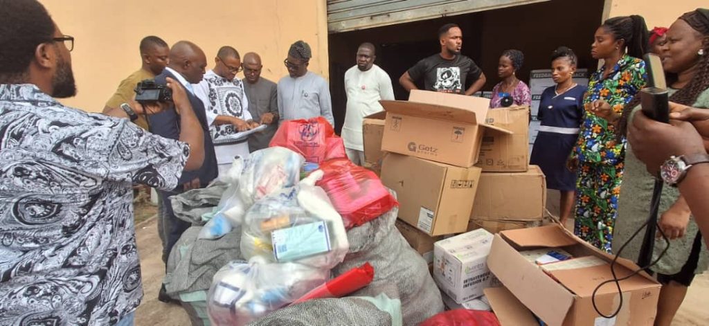 Items donated include 50 Lassa fever test kits, 100 coveralls, 200 pieces of isolation gowns, hand sanitizers, medications, and other essential supplies.